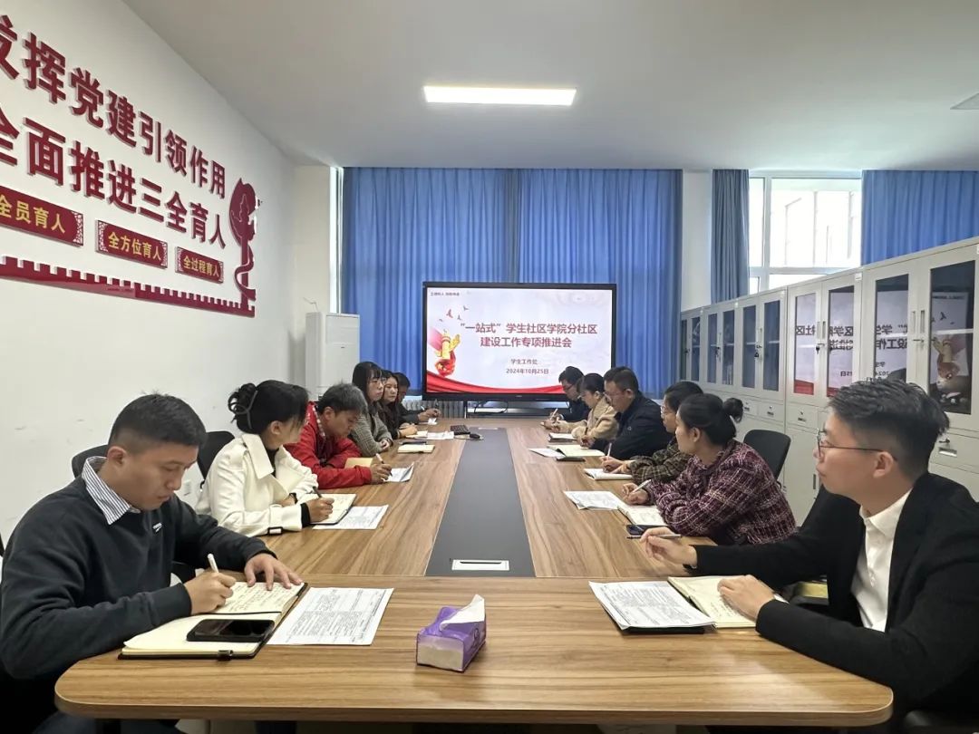 为进一步推进校院两级“一站式”学生社区建设,提升“一站式”学生社区育人实效,10月25日,学生工作处在6107会议室组织召开“一站式”学生社区分社区建设工作推进会,学生工作处、各二级学院党总支负责人及学生科长参加会议。