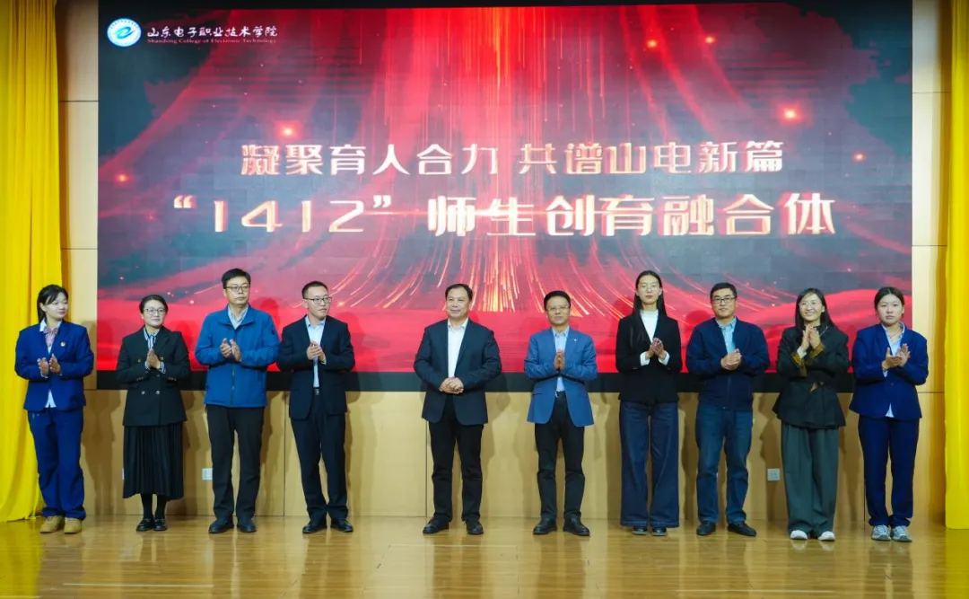 会上,各二级学院的宣传视频以独特视角和精彩画面,呈现在学科建设、科研创新、社会实践以及学生活动等方面的丰硕成果与鲜明特色。在热烈的掌声中,学校领导与融合体团队师生代表按向大屏上的金色掌印,一起为建设工作启幕。随着倒计时牌逐渐归零,金色手掌释放出的光芒瞬间汇聚,“凝聚育人合力,共谱山电新篇”的团结画卷跃然眼前。“1412”师生创育融合体建设工作正式全面启动!