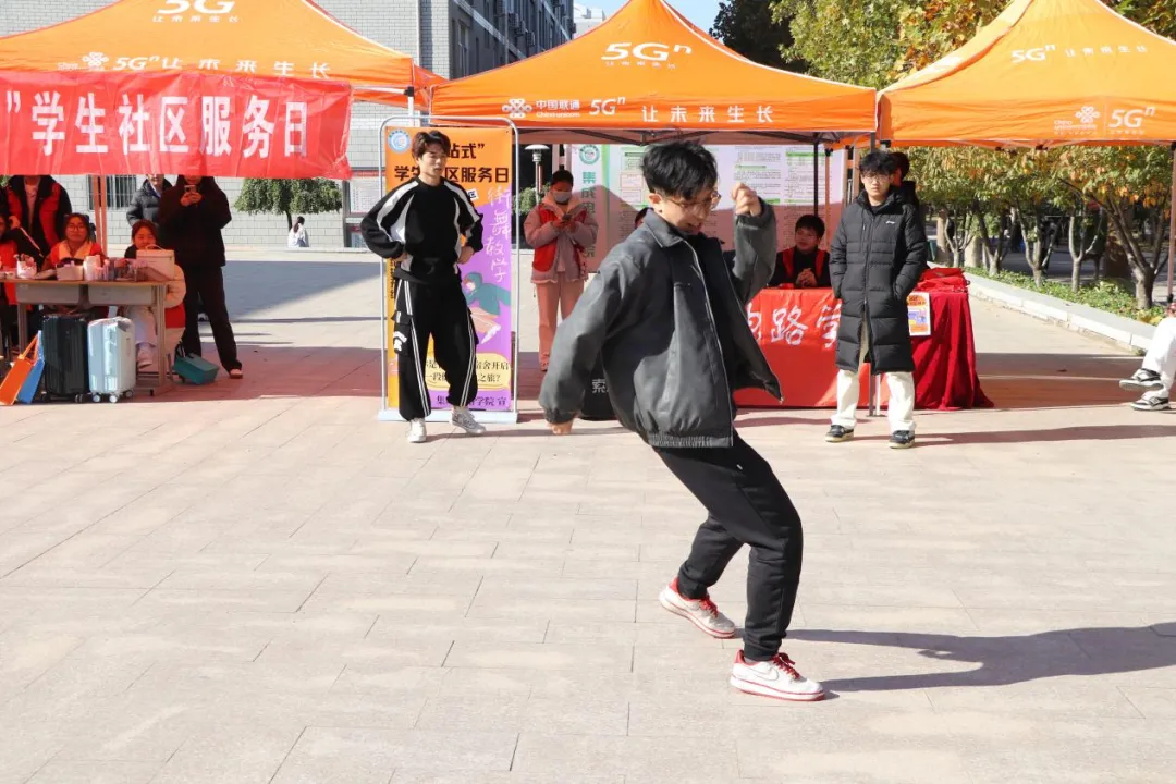 集成电路学院“‘e’星火”分社区的街舞教学摊位上,除了电子产品的维护升级外,热情洋溢的街舞爱好者带领同学们一起舞动青春,充分展示山电学子的青春魅力。