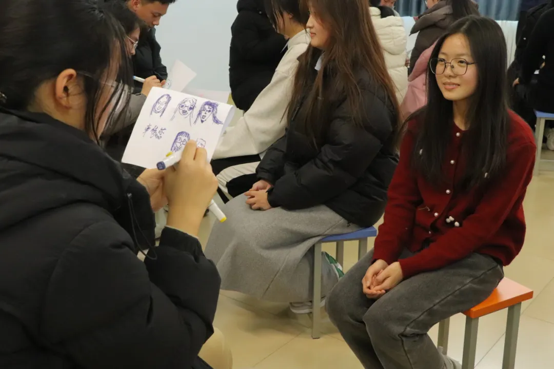接着,“内外圈循环--10秒钟肖像画”的接龙活动,激发了同学们的创意,释放了同学们的压力,欢声笑语中培养了大家的积极心理品质。