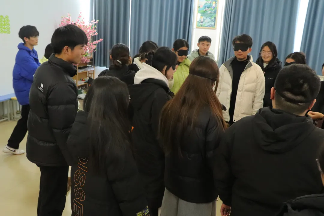 最后,通过角色扮演的方式,同学们体验了“信任之旅”和“信任之舞”活动,同学们在“盲人”和正常人的角色互换中,体验到人际关系中信任感、沟通能力和责任感的重要性。