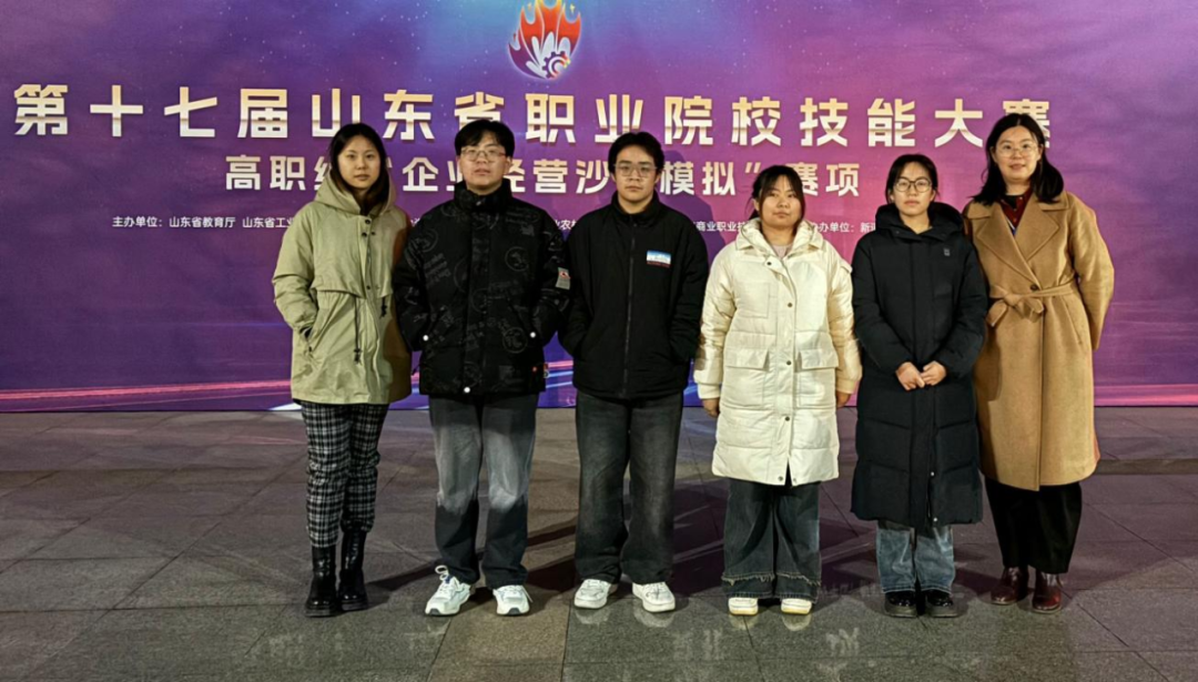 经过精心培养和选拔,卢曦和唐诗老师带领黄硕、丁春梅、巩娇、张广政同学组成竞赛团队代表学校参加第十七届山东省职业院校技能大赛。凭借扎实的专业知识、精湛的技能水平和出色的团队协作能力,他们在“企业经营沙盘模拟”赛项中,斩获二等奖的佳绩,创历年来此赛项最好成绩。
