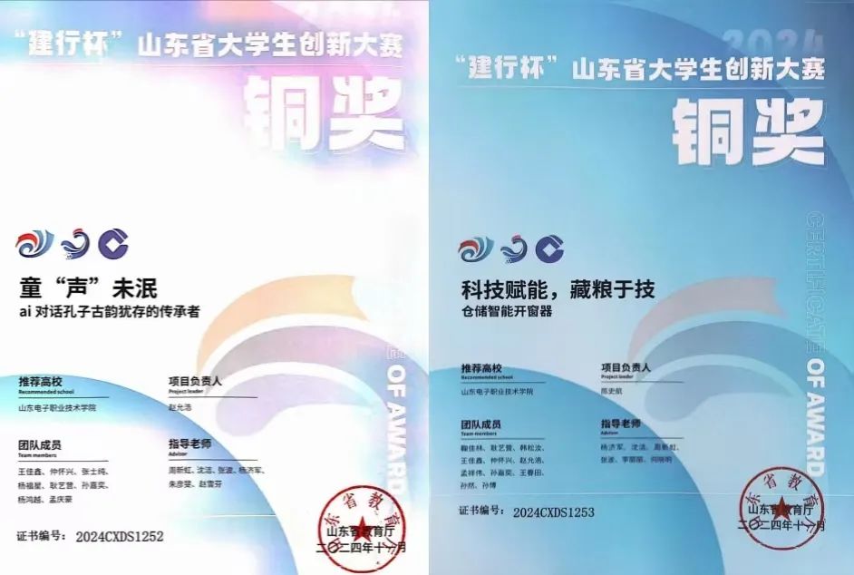 在产业需求牵引下,专业持续迭代和发展,师生不断成长和创新。2024年,立项教育部供需对接就业育人项目:定向人才培养培训(物联网方向);结项完成全国工信行指委电子信息分指委教学研究科研课题:基于CDIO模式的物联网工程实践项目的研究。师生项目“科技赋能,藏粮于技—智能仓储通风控制系统”荣获第八届山东省科技工作者创新大赛二等奖;指导学生在山东省大学生创新大赛中荣获铜奖2项,在第十四届“挑战杯”山东省大学生创业计划竞赛中荣获铜奖2项。