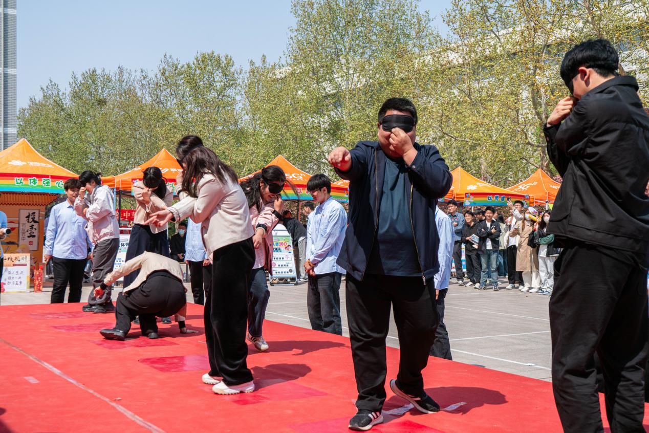 “我要找到你”师生互动游戏将开幕式推向了高潮。八组师生凭借声音与默契成功“会师”,王同学感慨道:“平时总觉得程老师很严肃,没想到蒙上眼睛后,她的笑声这么有辨识度!”这一感慨引发了全场的欢声笑语。