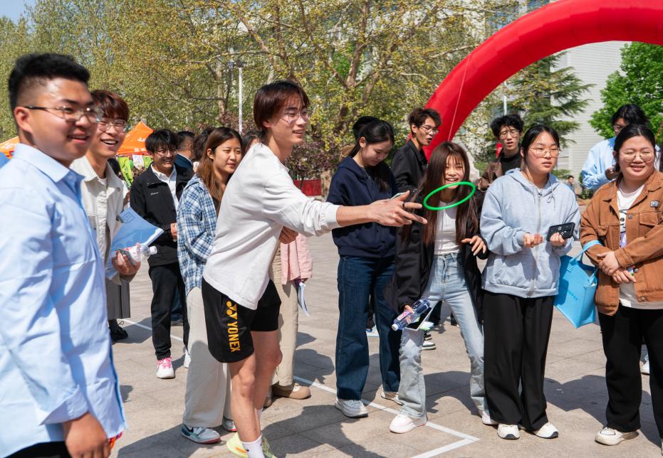“我要找到你”师生互动游戏将开幕式推向了高潮。八组师生凭借声音与默契成功“会师”,王同学感慨道:“平时总觉得程老师很严肃,没想到蒙上眼睛后,她的笑声这么有辨识度!”这一感慨引发了全场的欢声笑语。