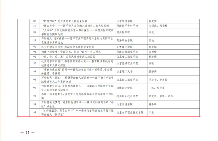 本次评选活动中,山东省高校共评选出103个优秀案例,山东省资助学会将对获奖案例进行宣传和推广。