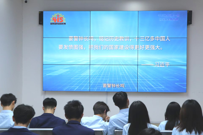 专题讲解结束后,全体人员共同观看由教育部指导推出的《千万师生同上一堂国家安全教育课》。课程邀请中国南海研究院王胜教授、山东大学马克思主义学院(威海)郝书翠教授、北京邮电大学网络空间安全学院付俊松副教授联合讲授,聚焦当前国际形势下的国家安全挑战,从海洋权益维护、意识形态安全、网络空间治理等维度展开深度分析。课程通过真实影像资料与互动问答形式,强调高校师生在维护国家安全中的特殊使命,号召青年群体以“居安思危”的忧患意识和“躬身力行”的担当精神,争做国家安全的“宣传者”和“守护者”。