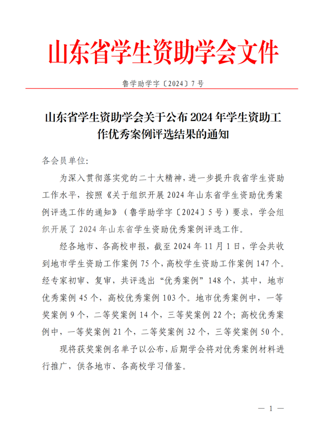 本次评选活动中,山东省高校共评选出103个优秀案例,山东省资助学会将对获奖案例进行宣传和推广。