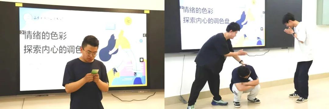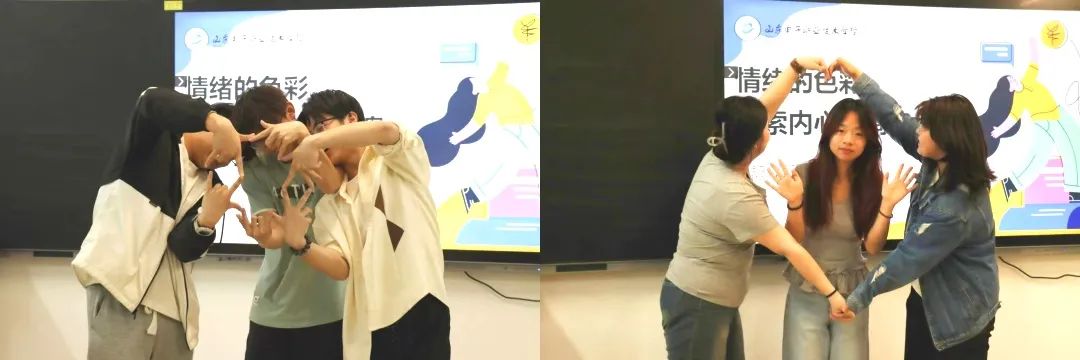 作为情绪认知的深化环节,“情绪魔盒”游戏通过抽选情绪卡片,引导同学们用微表情与肢体语言进行具身化表达。当“应对锦囊”环节揭晓“情绪管理ABC理论”“正念冥想”“运动解压”等科学调节法时,不少同学认真记录着这些改善不良情绪的实用工具。
