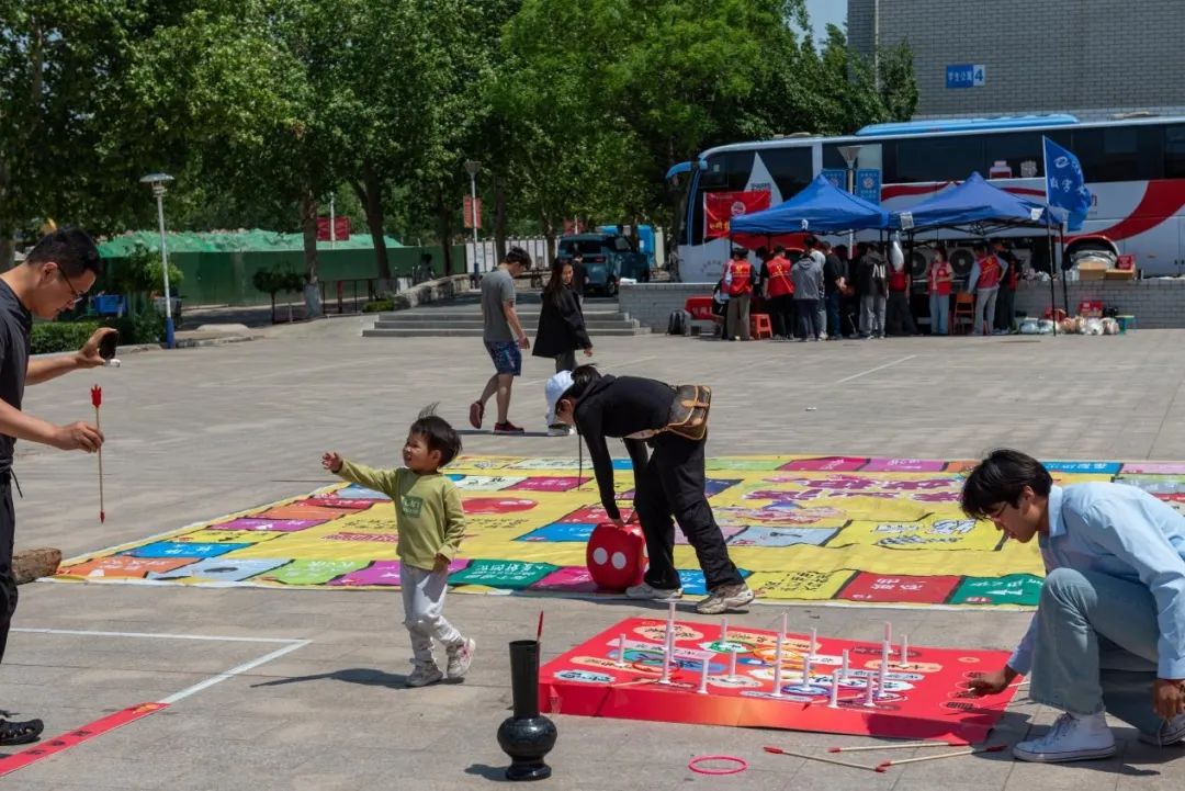 互动体验专区成了欢乐主场,传统与趣味交织。民俗体育区,踢毽子、滚铁环等传统项目唤醒童年记忆,同学们尽情玩耍,笑声不断,感受着传统体育的独特魅力。