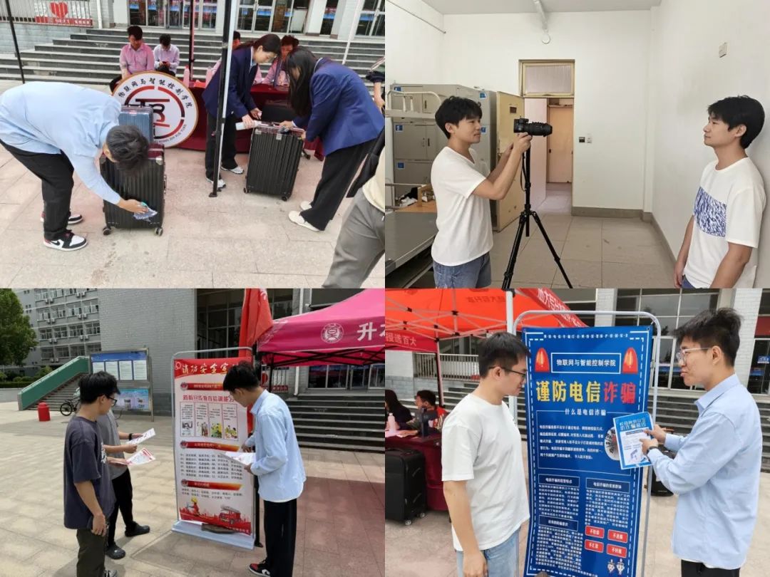 活动现场,生活服务、安全教育与科技体验三大板块同步推进。在生活服务区域,志愿者们手持清洁工具,对21个行李箱进行深度清洁,使其焕然一新;专业布置的证件照拍摄区配备完善设备,志愿者全程跟进姿势调整与后期修图,为10名同学定格青春风采。安全教育环节同样精彩纷呈。消防安全宣传区,志愿者向师生展示了消防器材的使用方法,并讲解火灾发生时的处理方法;防诈骗宣传区结合真实案例,揭露网络诈骗、兼职陷阱等常见手段,现场发放35份消防安全宣传单、20份防诈骗宣传单,有效提升学生的安全防范意识。科技体验成为活动亮点。雕刻机展示区前,专业人员现场演示设备在不同材料上的雕刻过程,并邀请同学们亲自操作。让大家沉浸式感受智能制造的魅力。