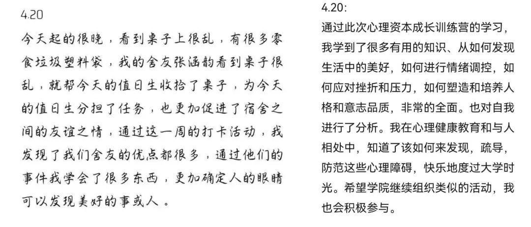 发现生活的美好模块,学生通过记录“三件好事”、拍摄“温暖瞬间”,挖掘生活幸福元素,结合情绪分享与主题研讨,建立积极思维模式。学会压力的应对模块,学生梳理压力源,制定应对策略,提升压力管理能力。营造和谐人际关系模块,通过“优点轰炸”与团队优势画像活动,增进了解与信任,提升沟通协作能力。实现自我成长突破模块,引导学生通过感恩日记与品格优势挖掘,助力学生梳理潜能,超九成学员制定成长计划。