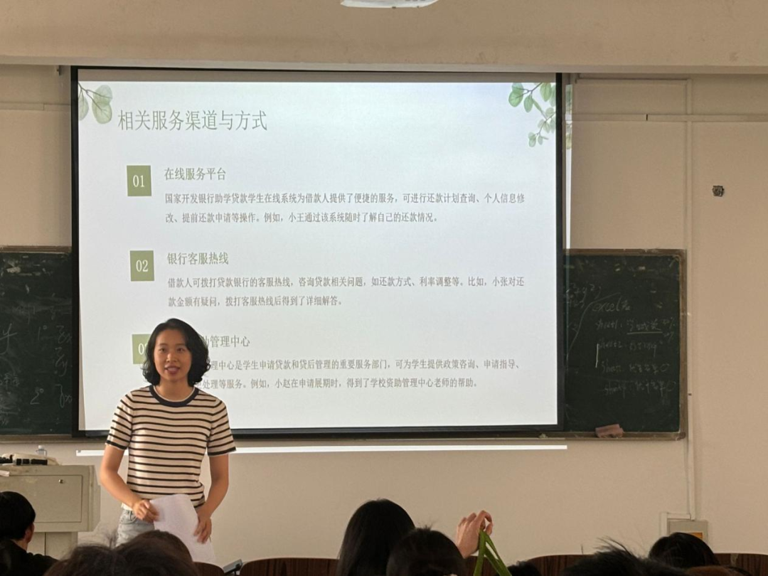 此外,宣讲会还贴心设置了互动答疑环节。同学们热情高涨,积极踊跃地就自己关心的诸多问题展开提问,诸如贷款额度的确定依据、毕业后的还款细节、贷款是否会对个人信用产生影响等。袁亚飞老师始终保持着耐心与细致,对每一个问题都给予了详尽且准确的解答,切实帮助同学们扫除了政策认知上的盲区,让同学们对助学贷款政策有了更加清晰、透彻的理解。