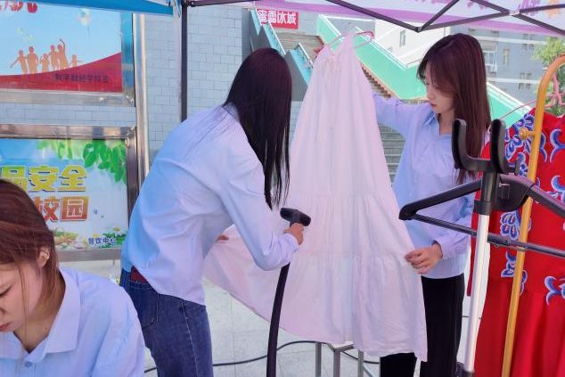 便民熨烫区域,学生志愿者们凭借熟练的操作技巧,为同学们带来贴心的衣物 “焕新” 服务。大家带着褶皱的衣物而来,又带着平整、整洁的衣衫满意而归。同学们在享受便利的同时,从整理衣物这一生活小事着手,逐步开启对生活美学的追求之旅,传递出独特的生活美学。
