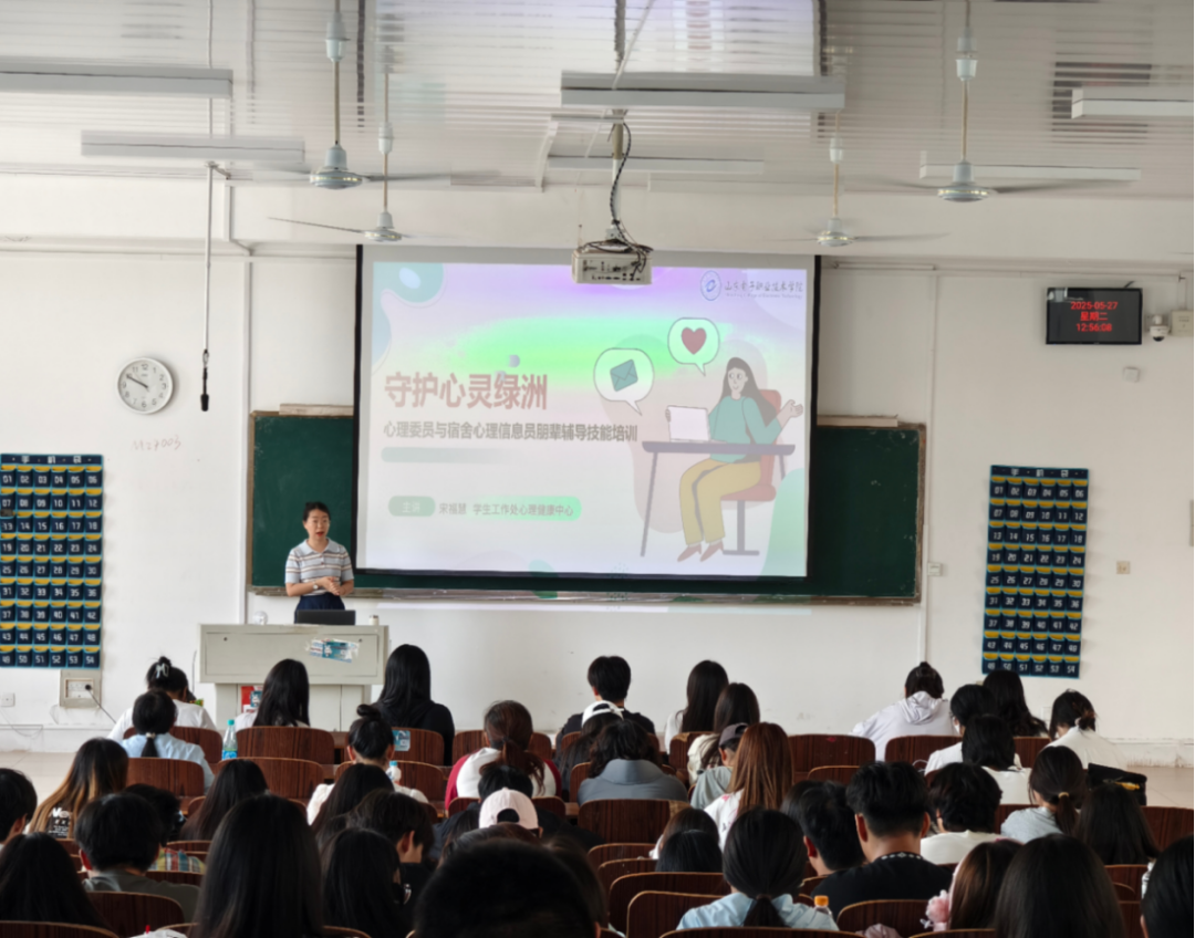为完善我校四级心理健康防护体系,提升朋辈心理骨干队伍的专业胜任力,527日中午,我校学生工作处心理健康中心组织开展“守护心灵的绿洲--心理委员和宿舍心理信息员朋辈辅导技能培训”,心理中心宋福慧老师担任主讲,2024级班级心理委员和宿舍心理信息员代表等近200人参加培训。