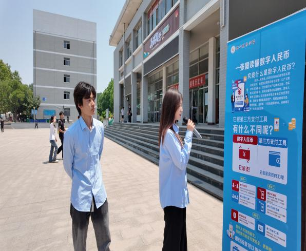 财经金融系的同学们结合自身专业优势,化身“金融小导师”,不仅深入浅出地讲解数字人民币的特性、优势及正规使用方式,还针对学生群体易遭遇的“校园贷”“兼职诈骗”等常见骗局,传授实用的防诈技巧。通过剖析诈骗案例,拆解诈骗伎俩,同学们在了解数字人民币的同时,提升了金融安全意识,为校园生活筑牢安全防线,奏响了金融安全的和谐乐章。