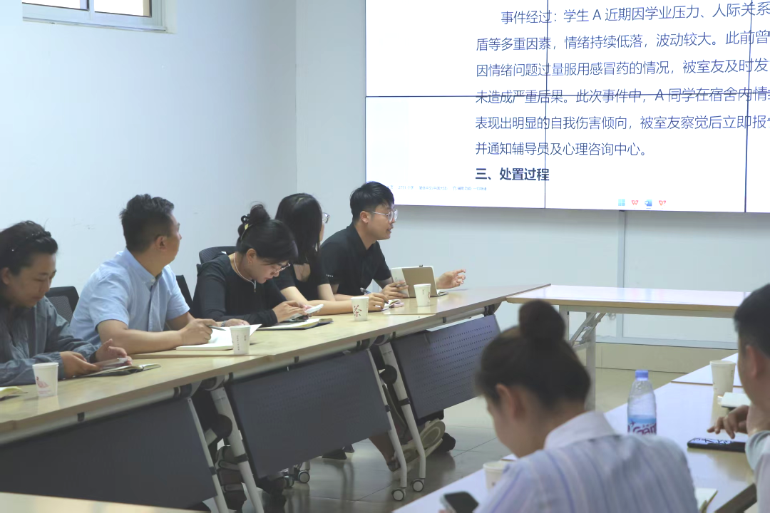 会议立足前期工作基础,各学院根据《关于进一步加强学生安全管理整改工作的通知》,系统梳理了近两年来的学生突发事件案例。本次研讨会从中精选出三个具有高度普遍性和典型性的案例,聚焦“宿舍矛盾”“心理异常”和“网络诈骗”三大关键领域,进行深度剖析和研讨,旨在提炼经验、查补短板。