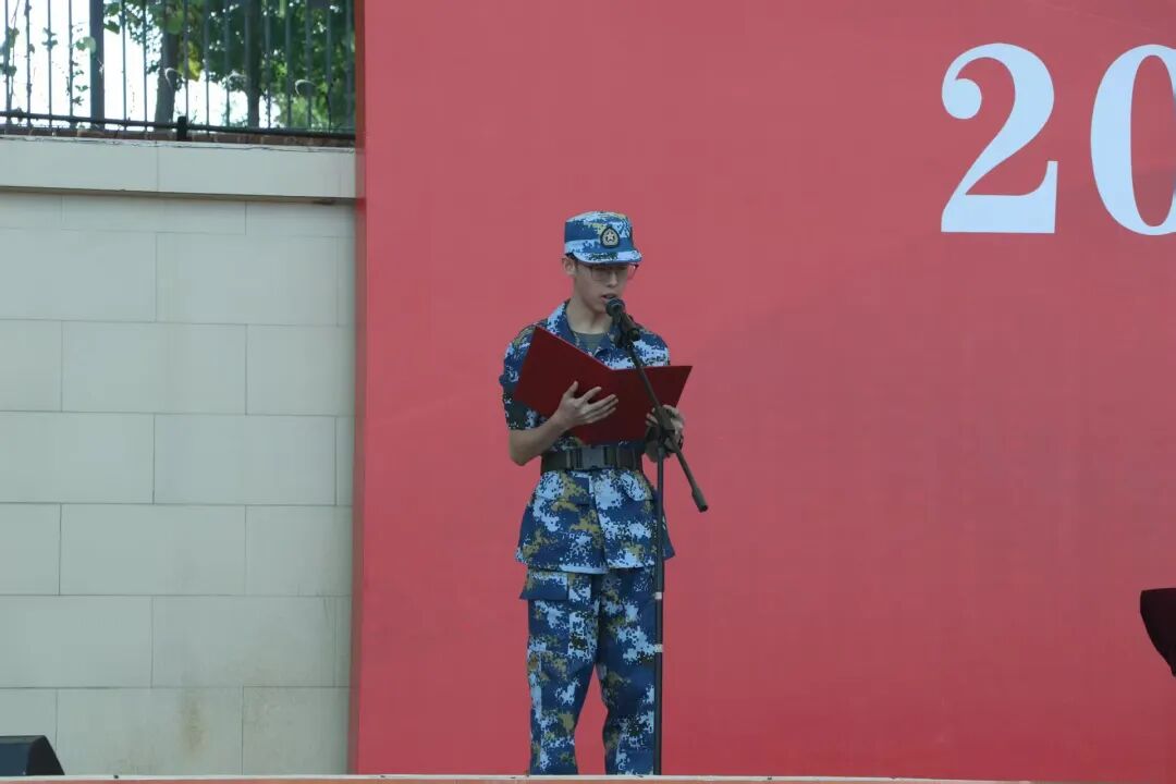 仪式伊始,全体师生肃立,升国旗、奏唱国歌,气氛庄重肃穆。随后,学生工作处处长王佩宣读了《2025年军训团营连划分及人员安排》,明确了本次军训的组织架构和训练任务。