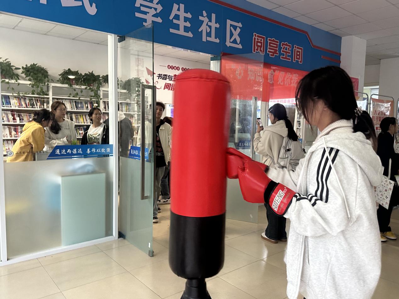 情绪宣泄区成为了学生们释放压力的“心灵港湾”。该展区专门设置了宣泄人等专业宣泄道具,为学生们提供了一个安全、健康的情绪释放渠道。活动现场,许多学生积极参与其中,在挥洒汗水的过程中缓解了心理压力,找回了轻松愉悦的心情。