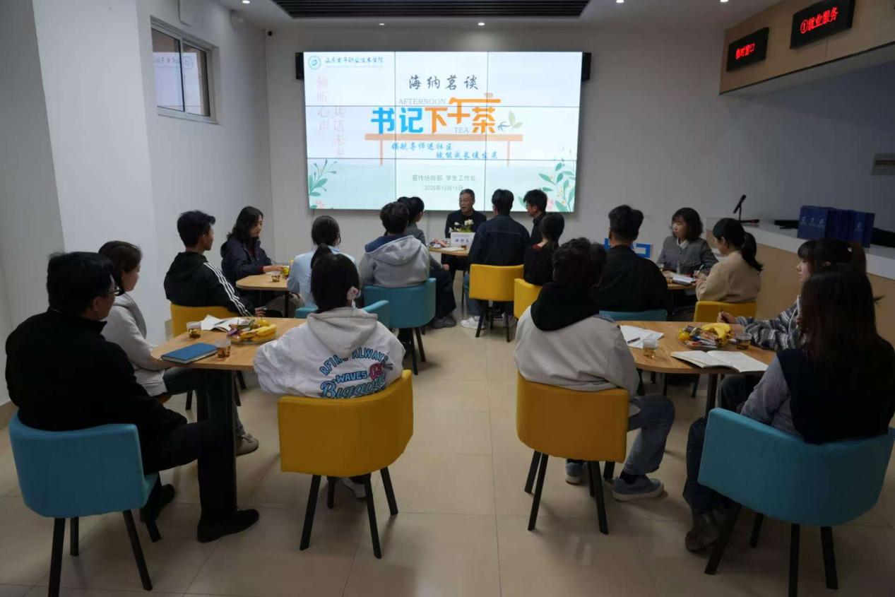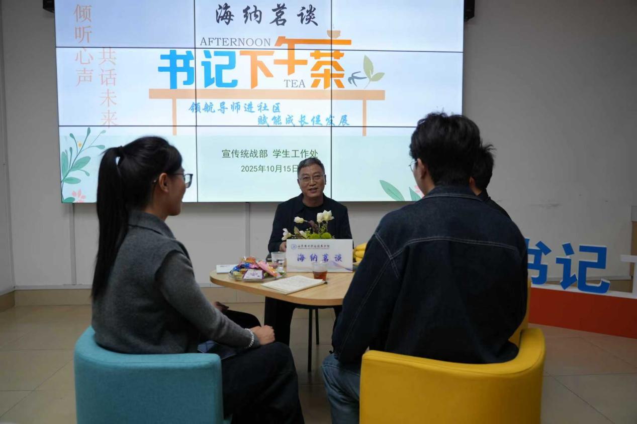 秋意渐浓,茶香暖心。1015日下午,深入践行“以学生为中心”育人理念,搭建师生“零距离”沟通平台,由宣传统战部、学生工作处主办的“海纳茗谈”暨“书记下午茶”学生座谈活动,在“一站式”学生服务大厅顺利举行校友企业茗间小筑和云南双江勐库茶叶有限公司提供支持。学校党委书记毕丛福以“领航导师”身份走进学生社区与来自7个系部的14名学生代表围桌而坐,在氤氲的茶香与轻松的氛围中,开启了一场关于学业、生活与梦想的零距离对话。学校党委委员、宣传统战部部长聂莺,学生工作处处长王佩及相关老师共同参与此次活动