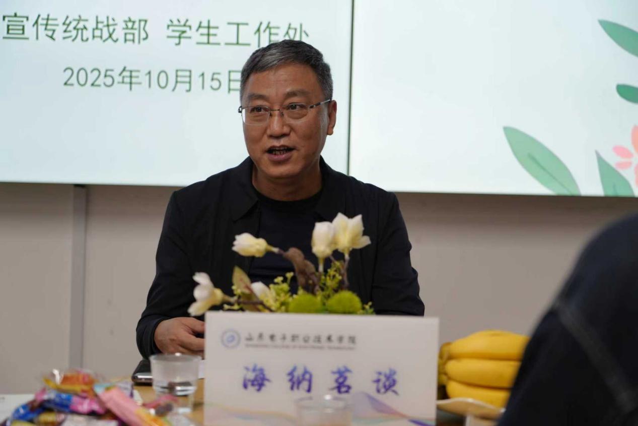 本次活动以“成长发展”为主题,通过“主题分享+自由座谈”的形式,让师生在轻松氛围中坦诚交流。活动现场,14名同学代表依次分享成长故事。他们中既有即将步入山东女子学院、菏泽学院等高校深造的“升学榜样”,也有在暑期参与红色研学、鲁喀专项支教的“实践先锋”,有从部队退役重返校园担任军训自训教官的“成长典范”,还有在专业、文艺、体育等各领域突出的“五育之星”。同学们从专业知识学习、文化空间建设、技能特长培养等方面提出具体建议,现场交流氛围热烈。毕丛福认真倾听每位同学的发言,不时就具体问题与大家深入交流,并对同学们的成长表现予以充分肯定。