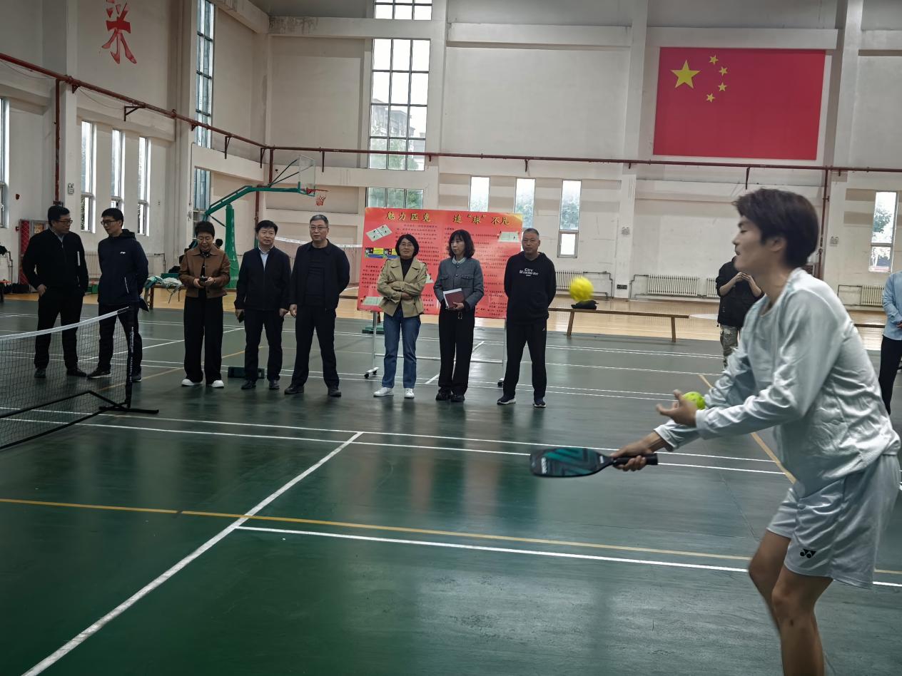座谈结束后,毕丛福向学生代表赠送了承载着学校情谊的文创纪念品。随后,他信步走入学生社区,现场观摩了同学们的匹克球训练,并与大家进行了亲切的互动交流,将关怀与温暖直接送到了同学们身边。
