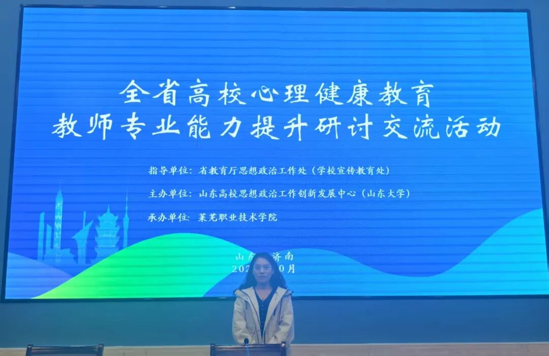 为进一步提升高校心理健康教育工作专业化水平,筑牢学生心理健康安全防线,10月23日至25日,全省高校心理健康教育提升研讨交流会在莱芜职业技术学院召开,学生工作处组织我校辅导员代表李冬梅参会。