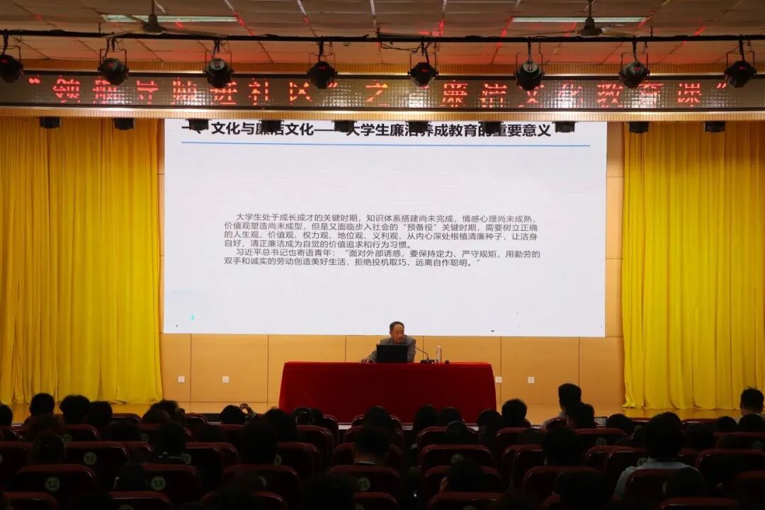 为深入推进廉洁校园建设,提升学生廉洁素养,10月29日,“领航导师进社区”系列活动之“廉洁文化教育课”在学术报告厅顺利举行。特邀学校纪委委员、科研中心主任王清春作为“领航导师”进行授课。2025级新生代表现场参与学习。