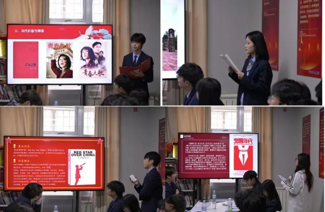 活动以“经典共读-深度解读-创意表达”为主线,构建“读--创”立体化学习体系。“经典共读”周计划率先启动,每周三下午在社区阅读角开设专题课堂,围绕“革命诗词中的信仰力量”“改革开放中的奋斗故事”等主题展开集中研读。“一站式”学生社区精心配备《红岩》《青春之歌》等数余本红色经典纸质书籍,满足学生阅读需求。