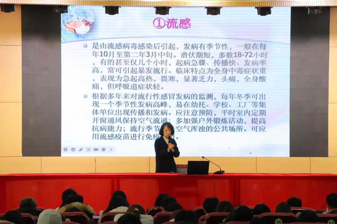 12月4日下午,学生工作处在学术报告厅举办“导师进社区”系列活动之秋冬季传染病防控专题讲座,特邀章丘区人民医院魏红主任作专题辅导。各系师生代表共300余人参加。