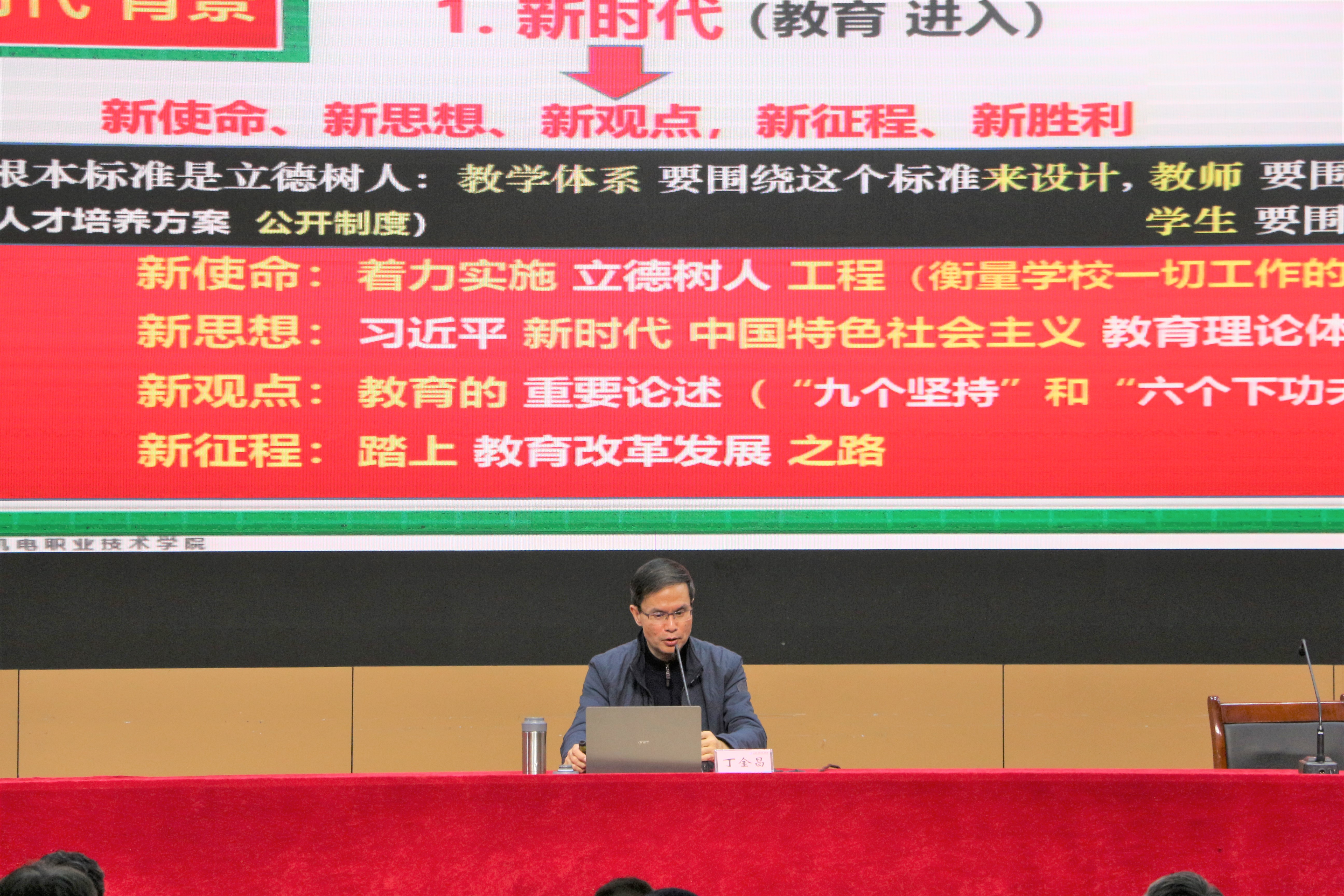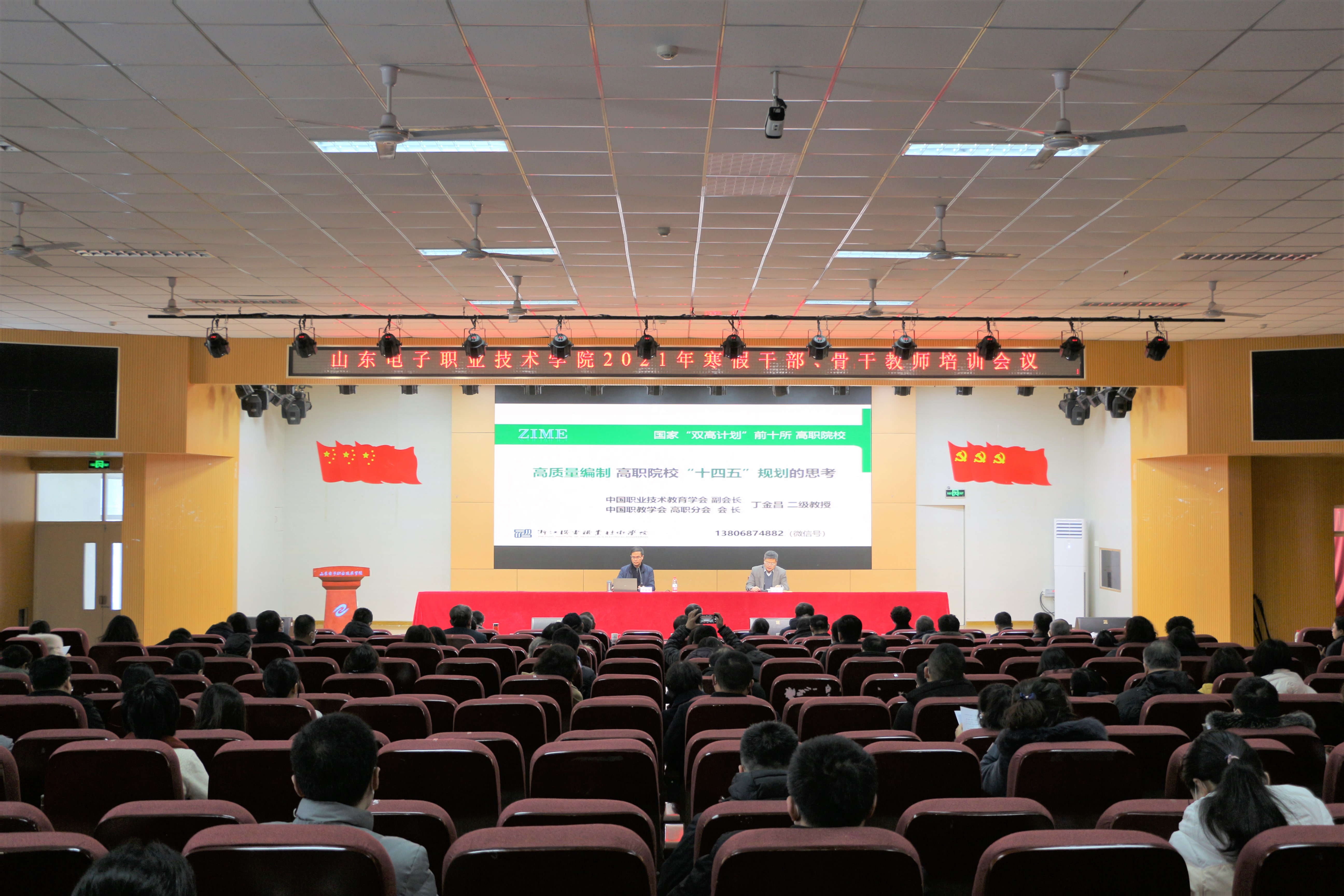 3月2日上午,学校在学术报告厅召开2021年寒假干部、骨干教师培训会议。为进一步推进学校“十四五”发展规划编制工作,更好把握“十四五”期间的战略方向、明确战略任务、擘画战略蓝图,实现学校新一轮内涵发展、创新发展、高质量发展,会议邀请中国职业技术教育学会副会长、中国职教学会高职分会会长丁金昌教授,作了题为《高质量编制高职院校“十四五”规划的思考》的专题报告。学校领导、副科级以上干部、教研室主任和骨干教师参加了培训,会议由梁会亭副院长主持。