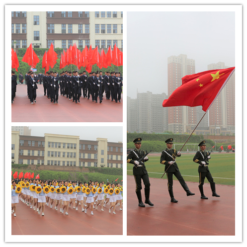 上午8时,开幕式正式开始。在雄壮激昂的《运动员进行曲》中,各方队步伐整齐、口号响亮、英姿飒爽,依次入场。师生齐唱国歌,鲜艳的五星红旗冉冉升起,嘹亮的国歌声在运动场上回荡。