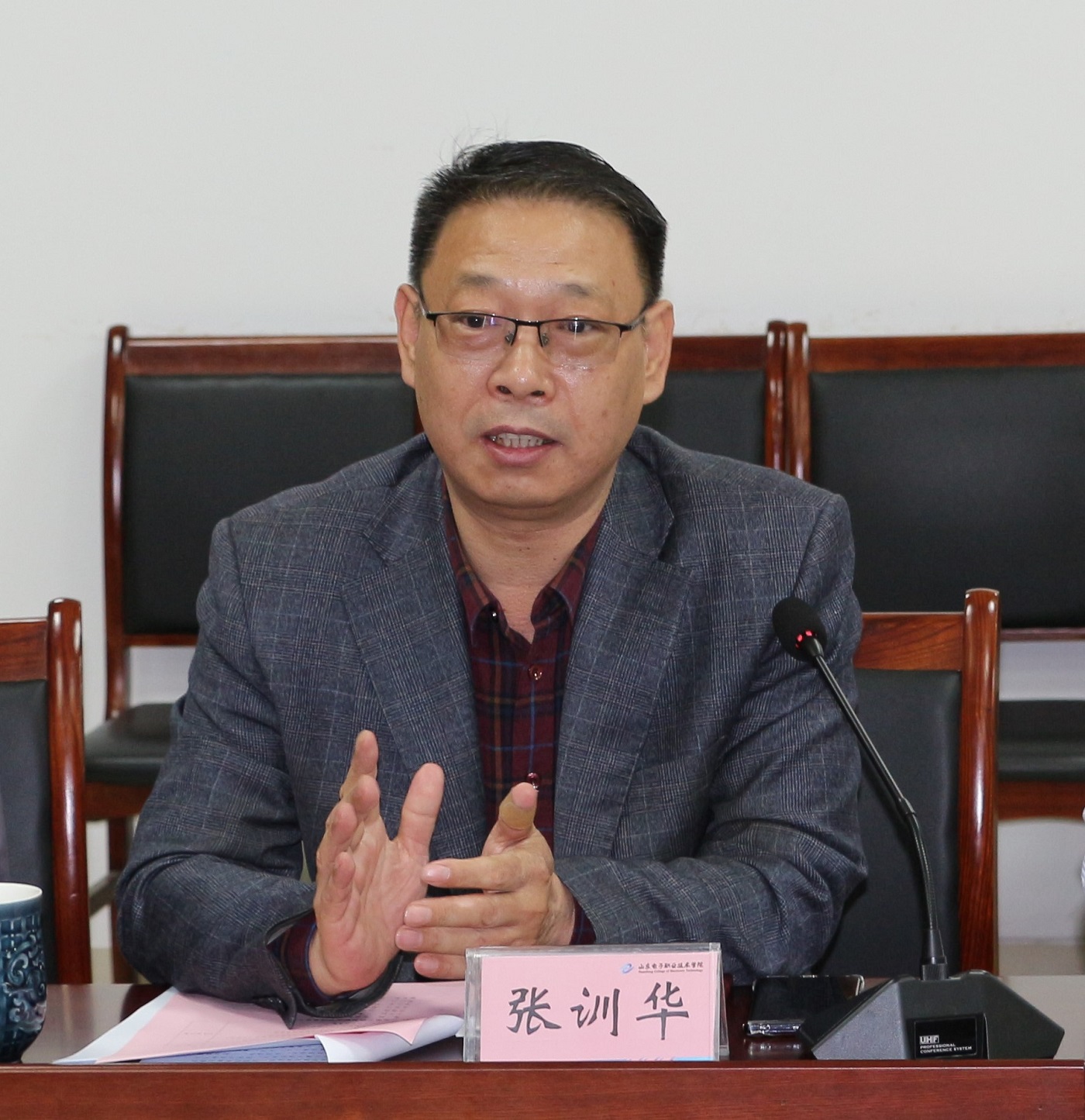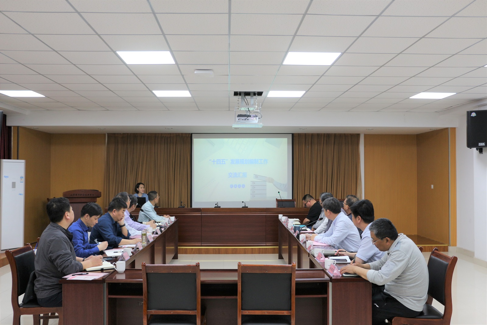 张训华代表学校对江苏电子信息职业学院来访表示热烈欢迎。两校领导共同观看我校宣传视频,张训华向来宾介绍了学校发展历程、办学特色、人才培养、师资队伍等情况。发展规划研究室主任李冬芸就学校“十四五”规划编制的工作思路和规划体系结构作专题报告。