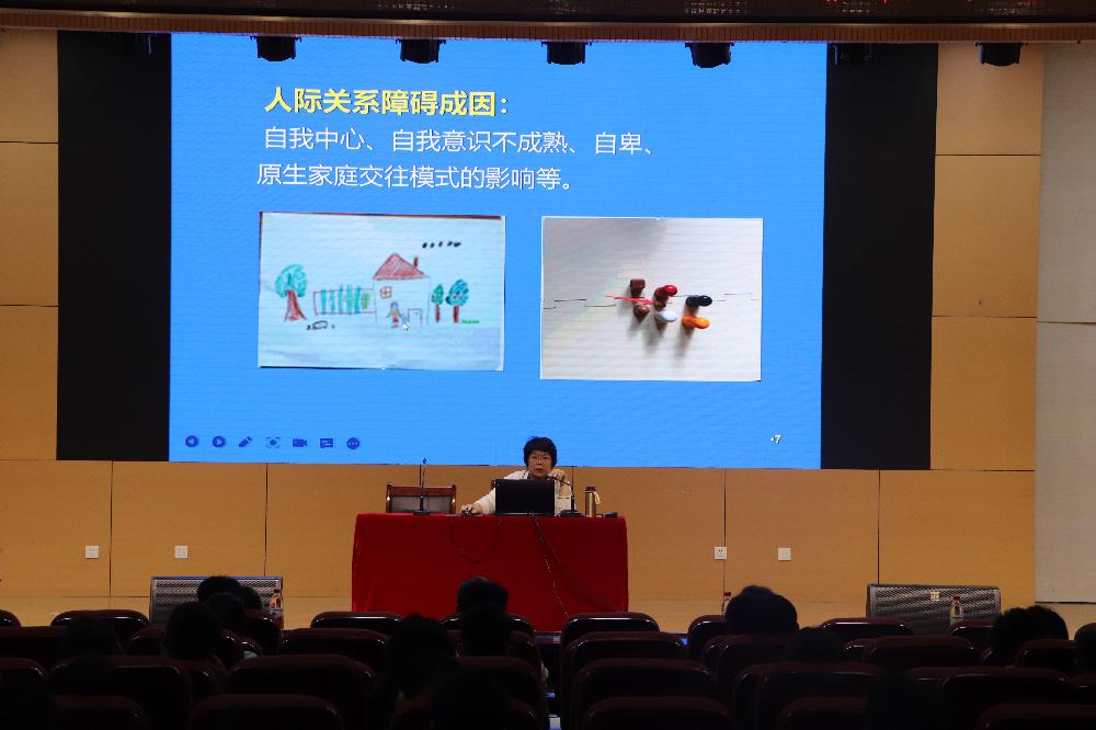 杨素华教授以《用“心”关爱学生,做学生心灵成长引路人》为题,运用有趣的心理测验开场,有效调动了在场师生的积极性。随后,她结合大量的学生管理经验和咨询案例,列举了当下大学生中常见的心理问题及症状,并从启动系统资源、完善组织架构和调动学生骨干力量三个方面进行了应对策略的具体分析,同时结合典型案例展示了资源取向技术在大学生心理咨询中的具体应用,展示了如何以目标为导向、以资源为本来剖析问题、处理问题。重点对老师们最为关心和困惑的问题--大学生心理危机识别与干预进行了专业的解读和建议。