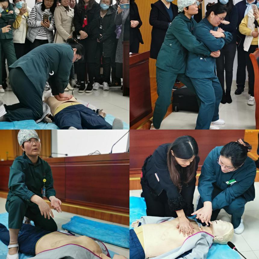 随后,老师们跃跃欲试,对新学的急救措施与医护人员展开互动,模拟真实的施救现场,病情判断、呼救病人、开通气道、心脏按压、人工呼吸,规范流畅地完成整个施救过程。