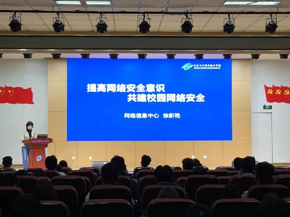 10月26日,山东电子职业技术学院2021级新生网络安全专题讲座在学术报告厅召开。本次讲座由网络信息中心与学生工作处联合举办,网络信息中心王娟娟主持,徐新艳教授主讲,2021级各班新生代表参加讲座。