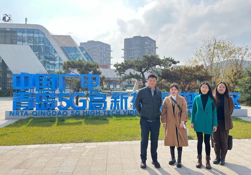 调研组一行首先到达青岛东方影都影视工业园,参观了园区内30多个演播室群,深入了解了当前影视前期拍摄的前沿技术,随后在国家发展高新视频重要产业示范园--中国广电·青岛5G高新视频实验园区体验了基于5G网络下超高清VR视频并参观了研学基地--青岛电影博物馆。青岛海发文化科技有限公司孙振经理和孟爽老师全程进行了详细的介绍。