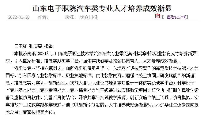 【大众日报】山东电子职院汽车类专业人才培养成效渐显