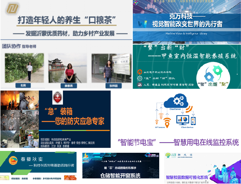 “挑战杯”中国大学生创业计划竞赛是国内大学生最关注的全国性创业赛事之一。学校从去年12月份开始组织参加第十三届“挑战杯”山东省大学生创业计划竞赛,通过校赛宣传和选拔和“冬令营”“决赛训练营”两轮培育,共推荐了9个优秀作品进入省级比赛,最终8件作品入围省级终审决赛并获奖。《打造年轻人的养生“口粮茶”——发掘沂蒙优质药材,助力乡村产业发展》获金奖;《“鳖”出新“财” —甲鱼室内恒温智能养殖系统》《克万科技—视觉智能改变世界的先行者》获银奖;《“急”装箱--您的防灾应急专家》《智能节电宝——智慧用电在线监控系统》《春播秋实-科技兴农与电商助农践行者》《随“芯”而动的隐形机械手—仓储智能开窗系统》《智慧校园数据可视化系统》获铜奖。