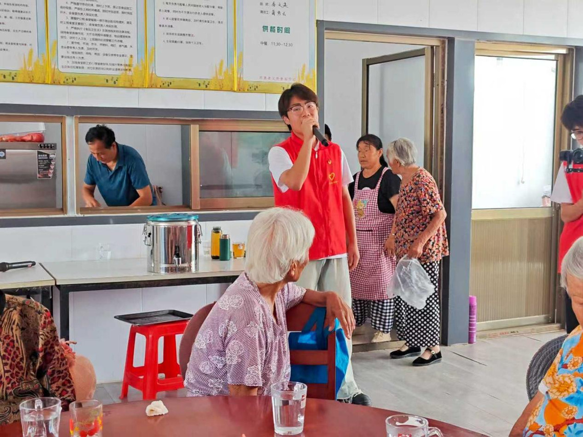 7月15日上午,队员们深入赵官镇幸福食堂开展敬老活动。他们围坐老人身旁,倾听岁月故事,并献上精心准备的歌曲、朗诵等节目,食堂内欢声笑语、掌声阵阵。贴心的问候与“爷爷奶奶最近身体怎么样”的关心暖人心扉;为行动不便老人推椅、端送饭菜的细微举动传递着尊老敬老的淳朴情意。队员们还发挥专业特长,义务为老人拍摄笑脸照片与短视频。老人们看着屏幕上鲜活的影像,欣喜称赞:“拍得真好,谢谢孩子们啊!”