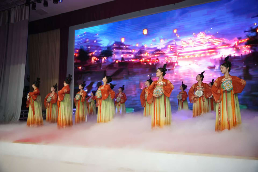金秋送爽,丹桂飘香。在中秋、国庆双节来临之际,9月28日晚,山东电子职业技术学院大学生艺术团织月民俗艺术队与舞蹈队受邀走进小鸭集团,亮相“中秋赏月圆·国庆颂华诞”2025年双节文艺晚会。他们以《梦回大唐》《春暖花开》两支精心编排的舞蹈,为现场企业职工带来一场视听盛宴。此次演出不仅展现了学校艺术教育的丰硕成果,也搭建起校企文化交流的新平台,谱写了产教融合的动人篇章。