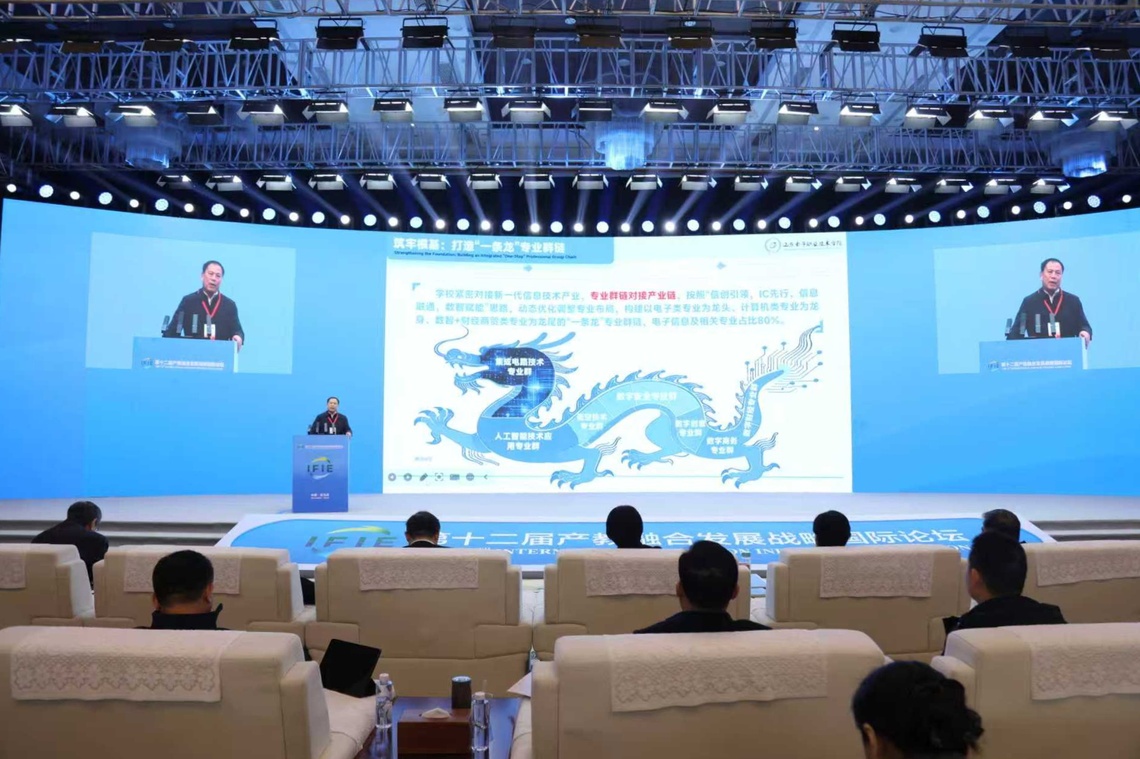 12月4日-5日,由教育部学校规划建设发展中心、中国职业技术教育学会、应用技术大学(学院)联盟主办,黄淮学院承办的第十二届产教融合发展战略国际论坛在黄淮学院举办。中国职业技术教育学会会长、教育部原副部长鲁昕,教育部学校规划建设发展中心主任孙明春,河南省教育厅厅长别荣海,中国工程院院士王复明,教育部教育数字化专家咨询委员会主任委员杨宗凯等专家领导参与了本次活动。山东电子职业技术学院院长张建臣受邀参加此次论坛,并作专题报告。