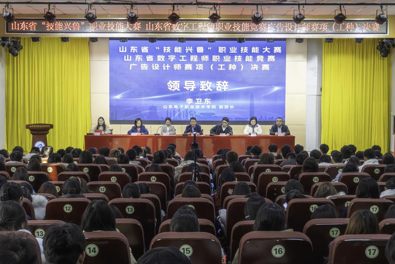 2025年12月4日至5日,山东省“技能兴鲁”职业技能大赛——山东省数字工程师职业技能竞赛广告设计师赛项决赛在我校举办。山东省继续工程教育协会秘书长吴笛,山东省建设科技与教育协会副会长兼秘书长侯仰志,山东未来云计算有限公司副总经理杨骐榛,山东电子职业技术学院副院长李卫东、继续教育与培训部负责人,以及来自全省的90余名参赛选手、裁判员与师生代表共同参加开幕式。