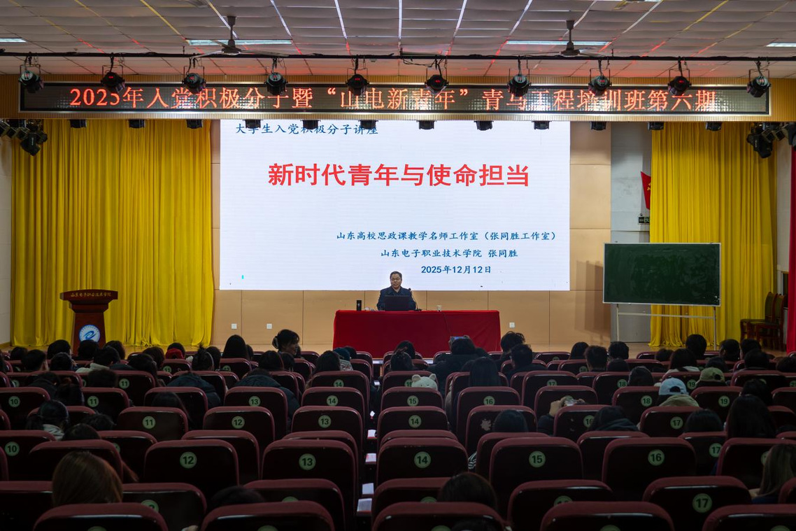 为加强青年思想引领,引导学生坚定理想信念,增强历史责任感与使命感,12月12日,我校2025年入党积极分子暨“山电新青年”青马工程培训班第六讲在学术报告厅举行。思想政治...