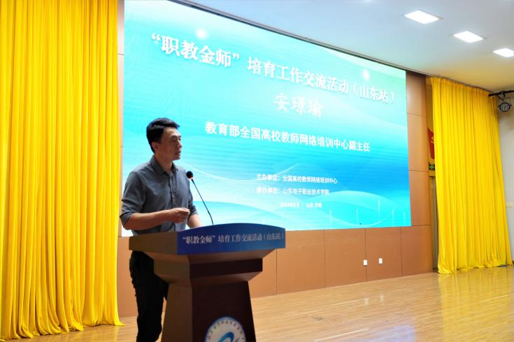 为推进落实教育部关于加强新时代教师队伍建设和推动现代职业教育高质量发展的部署要求,做好“职教金师”培育工作,8月21日,由全国高校教师网络培训中心主办,山东电子职业技术学院承办的“职教金师”培育工作交流活动(山东站)在学校学术报告厅成功举办。省内20余所相关职业院校领导、嘉宾、教师共200余人参加交流活动。活动由山东电子职业技术学院党委委员、副校长梁会亭主持。