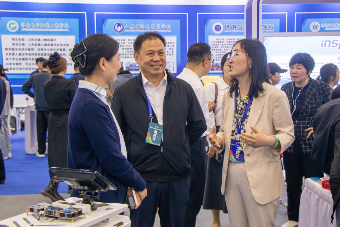在2025年山东省职教周活动中,我校牵头打造的“人工智能”展区,以科技感与体验感为着力点,深度展现人工智能技术在职业教育中的创新应用,并突出产教融合对职业教育智能化转型的推动作用。