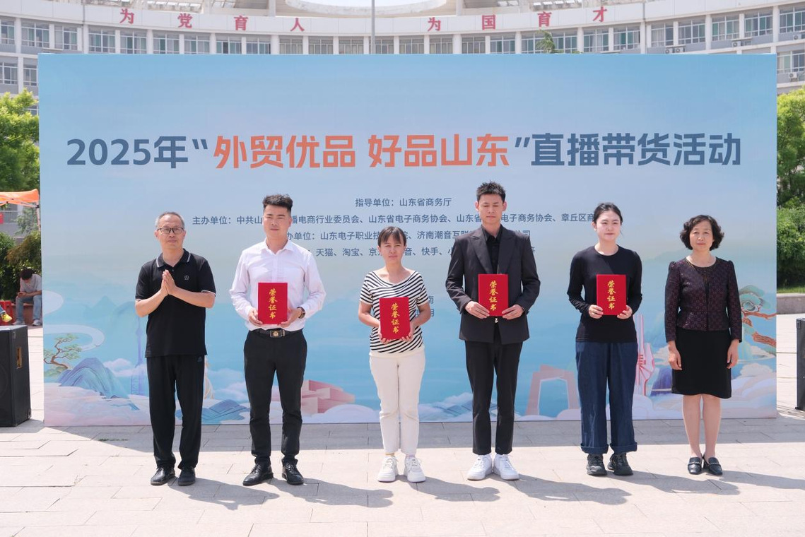 2025年5月15日,由山东省商务厅指导,中共山东省直播电商行业委员会、山东省电子商务协会、山东省跨境电子商务协会、章丘区商务局联合主办,我校与济南潮音互联网科技有限公司共同承办的外贸优品·好品山东直播带货进校园活动在校园广场启幕。本次活动获得天猫、淘宝、京东、抖音、快手、小红书、腾讯视频号等电商平台支持,吸引全省50余家优质企业携外贸优品、非遗老字号、特色工艺品参展,既为消费者呈现品质盛宴,也为师生搭建了行业实践平台。