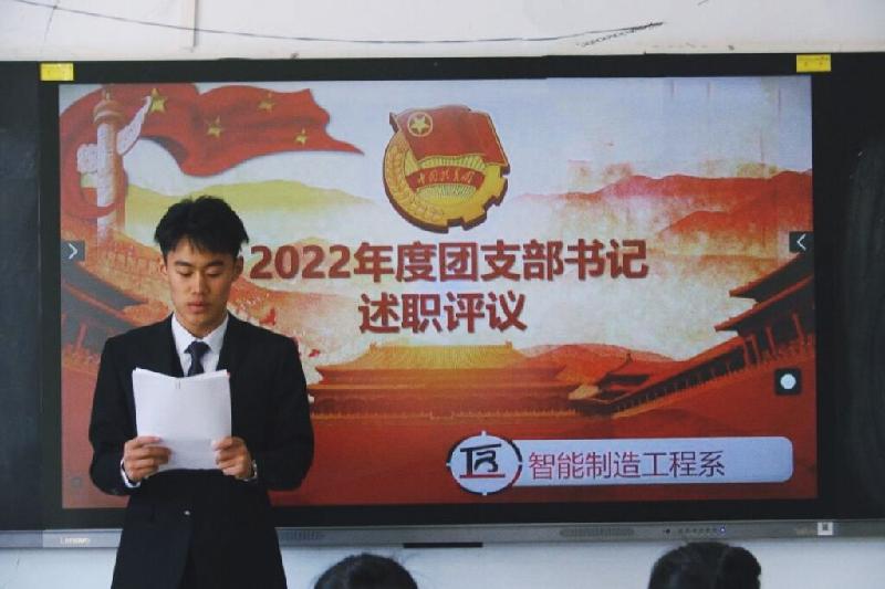 系部要闻|智能制造工程系团总支召开2022年度团支部述职评议会为贯彻落实团中央《关于印发<基层团组织书记述职评议考核暂行办法>的通知》精神和全面从严治团要求,考核各班级团支部全年各项工作落实情况,激发团组织活力,2月11日下午,智能制造工程系团总支在3102教室组织2022年度基层团支部书记述职评议会。评议会采用线上、线下相结合的方式,由辅导员宋艳文主持。