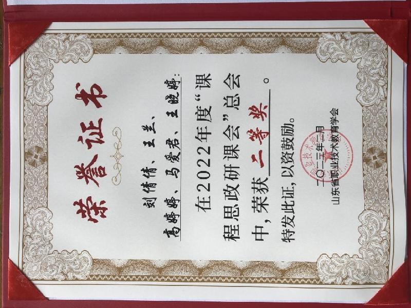 2023年2月24至25日,由山东省职业技术教育学会主办、山东省职业技术教育学会思政课程与课程思政研究分会协办的山东省职业教育学会2022年度课程思政研课总会在莱芜职业技术学院举行。我系教师刘倩倩、王兰、高婷婷、马爱君、王晓婷组成的《建筑构造与识图》课程团队在经历了层层选拔后荣获二等奖。