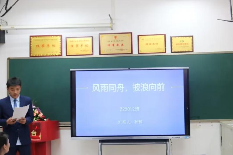在评选现场,13班级代表通过班级风采展示和PPT汇报讲解相结合的形式,从班级班风建设、学风建设、思想建设、素质发展及成绩荣誉五个方面取得的成果进行详细的讲解。各班级代表用精心的材料准备、流利的陈述、清晰的思路展现出班级良好的精神风貌和积极向上的状态,获得现场一致好评。最后王晓天对本次答辩活动进行点评。他肯定了各班代表的答辩态度和精神风貌,对各班级在答辩中展示近期取得的成绩表示肯定。同时指出在答辩现场所存在的问题,并提出宝贵意见。同时希望通过此次答辩评审会,各个班级之间能够相互学习借鉴,共同进步提升。